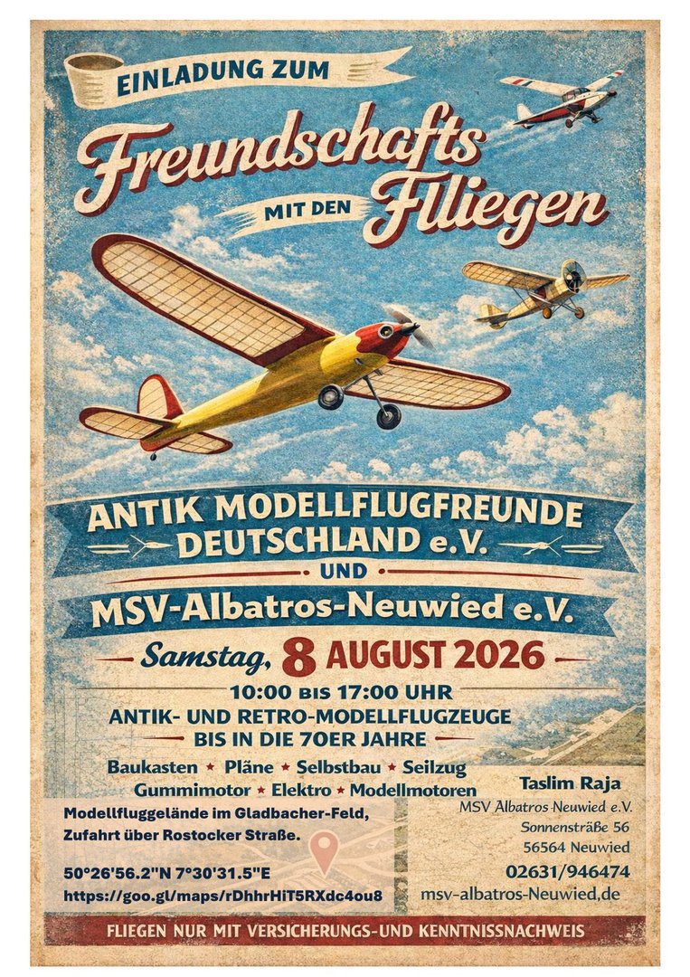 Freundschaftsfliegen zusammen mit dem AMD am 08.08.2026 in Neuwied von 10.00 bis 17.00 Uhr